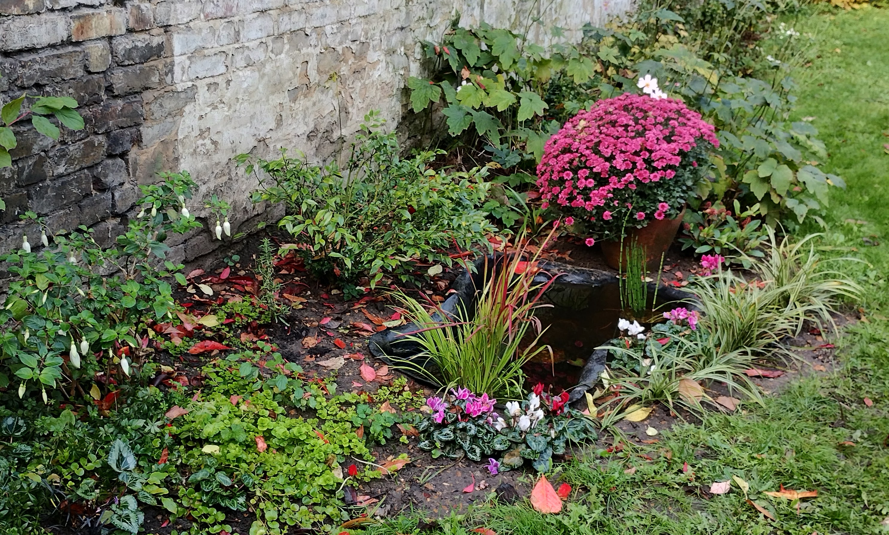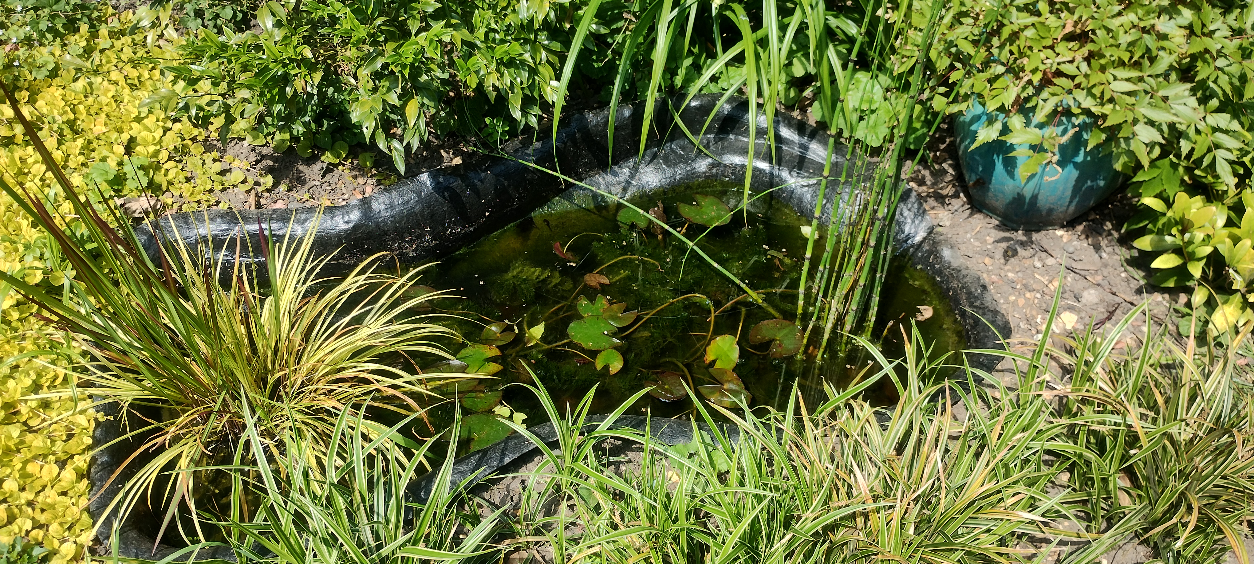 Not much has been added or moved this month – I’ve been too busy doing other things. It has been too wet to be inviting. All the toadlets have disappeared from the pond and tiny little toads are occasionally visible in the creeping jenny.