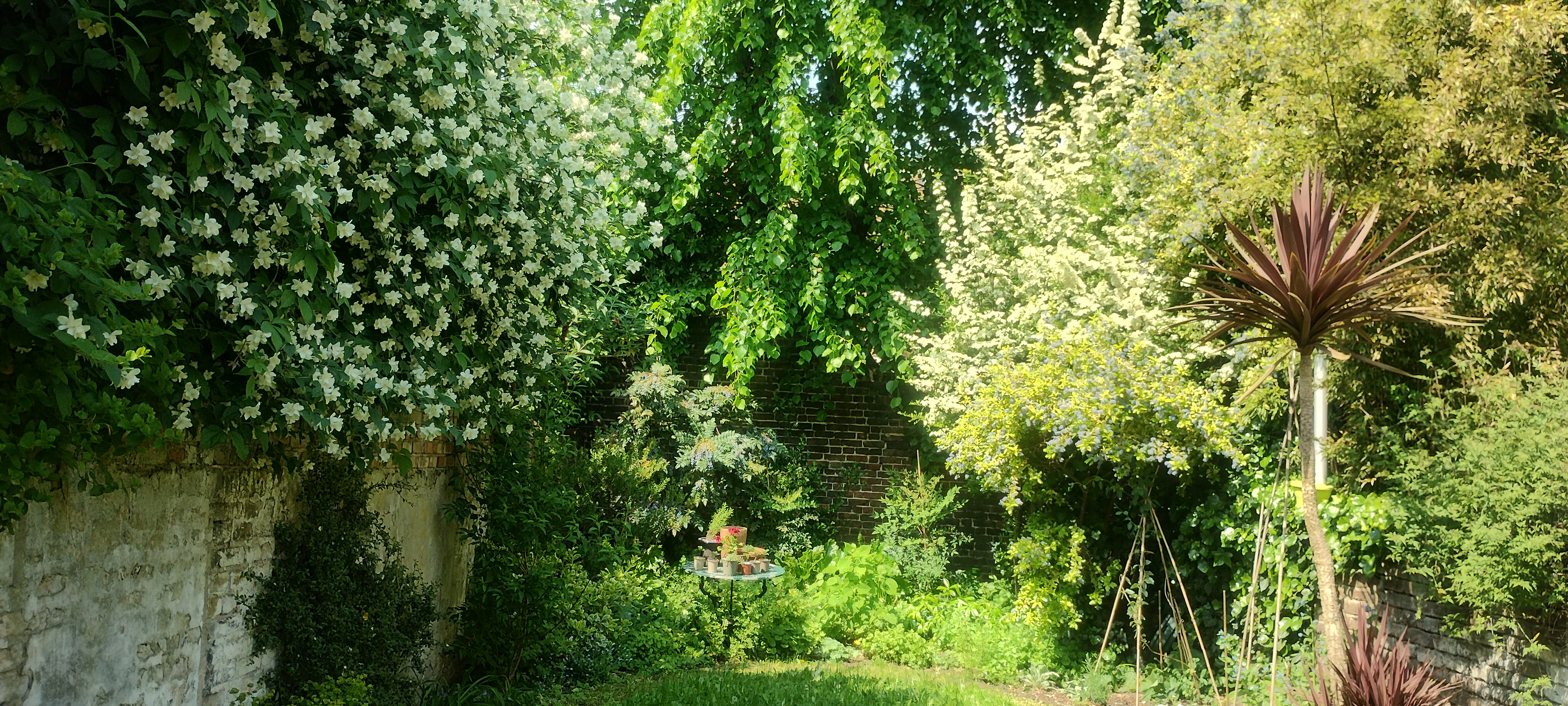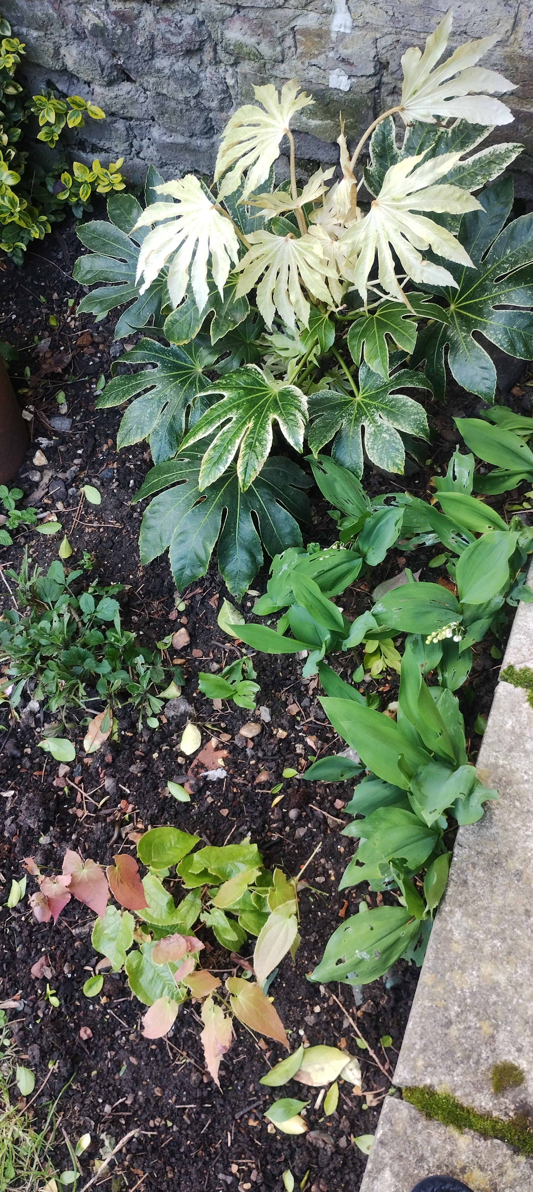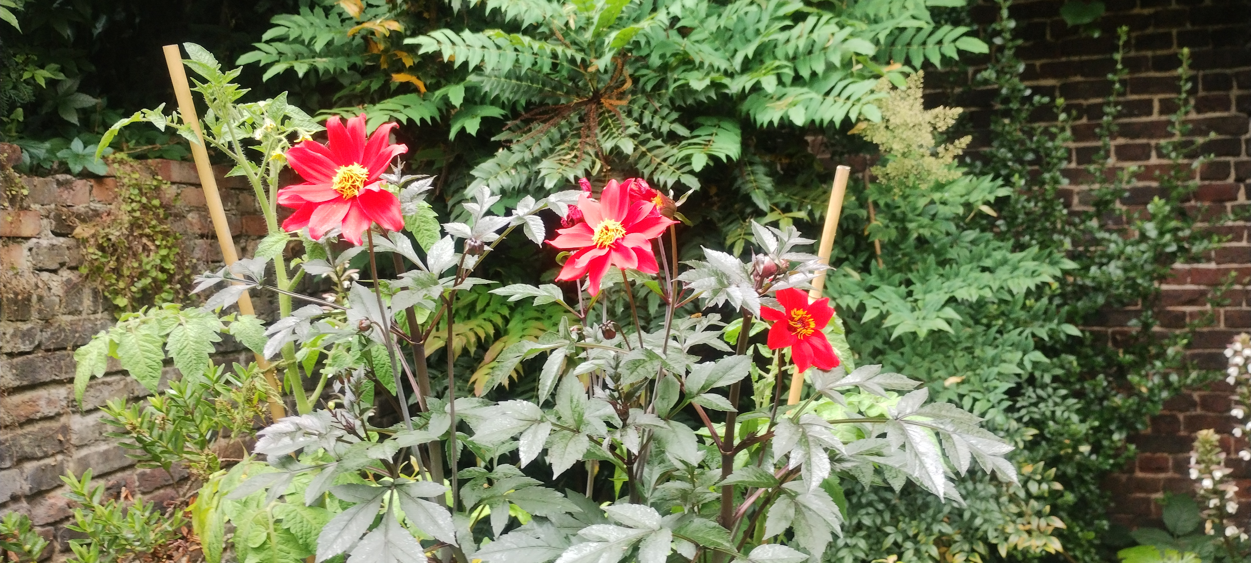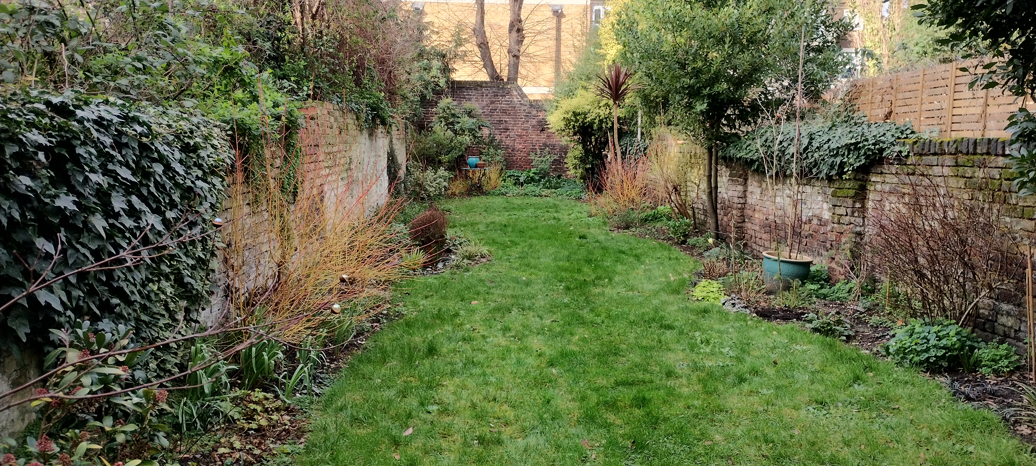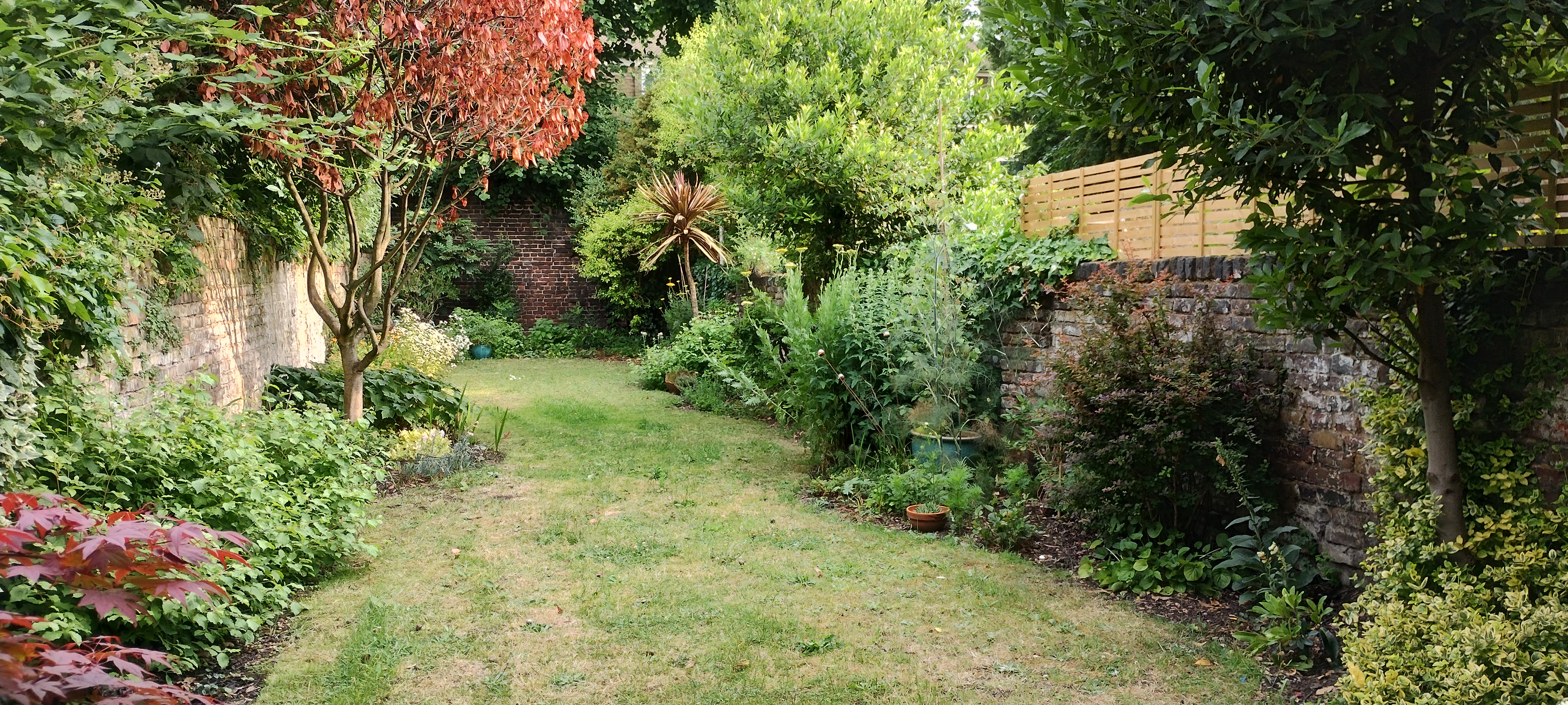 The teasel is now at my head height and producing spiky flower heads. The valerian planted at the end of June in the side beds seems to be slug-resistant and is establishing itself. The campion rescued from the lawn last year is flowering under the ceanothus and will hopefully spread this year. The Japanese anemones are putting up lots of buds. There have been flowers on the water lily, the sedge and the grasses have both grown, though I feel there’s more I could do with it (one bonus – it is a spectacular slug-trap)