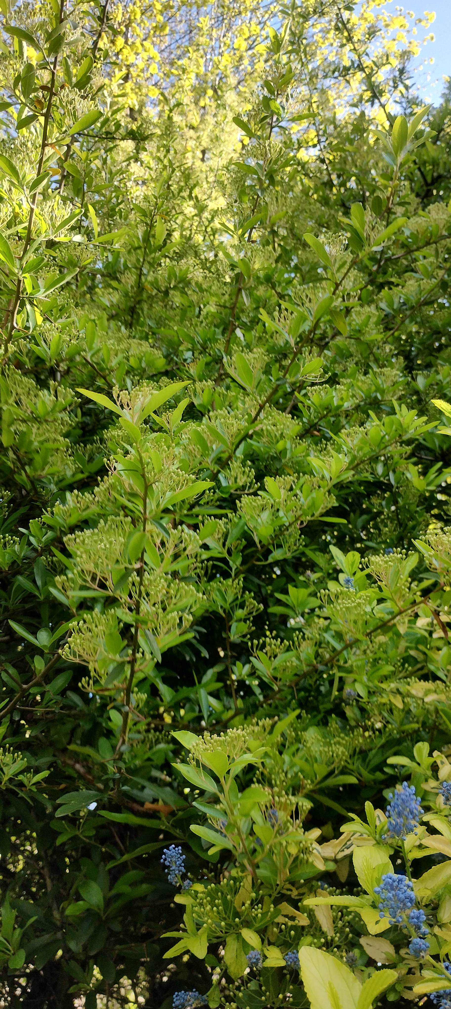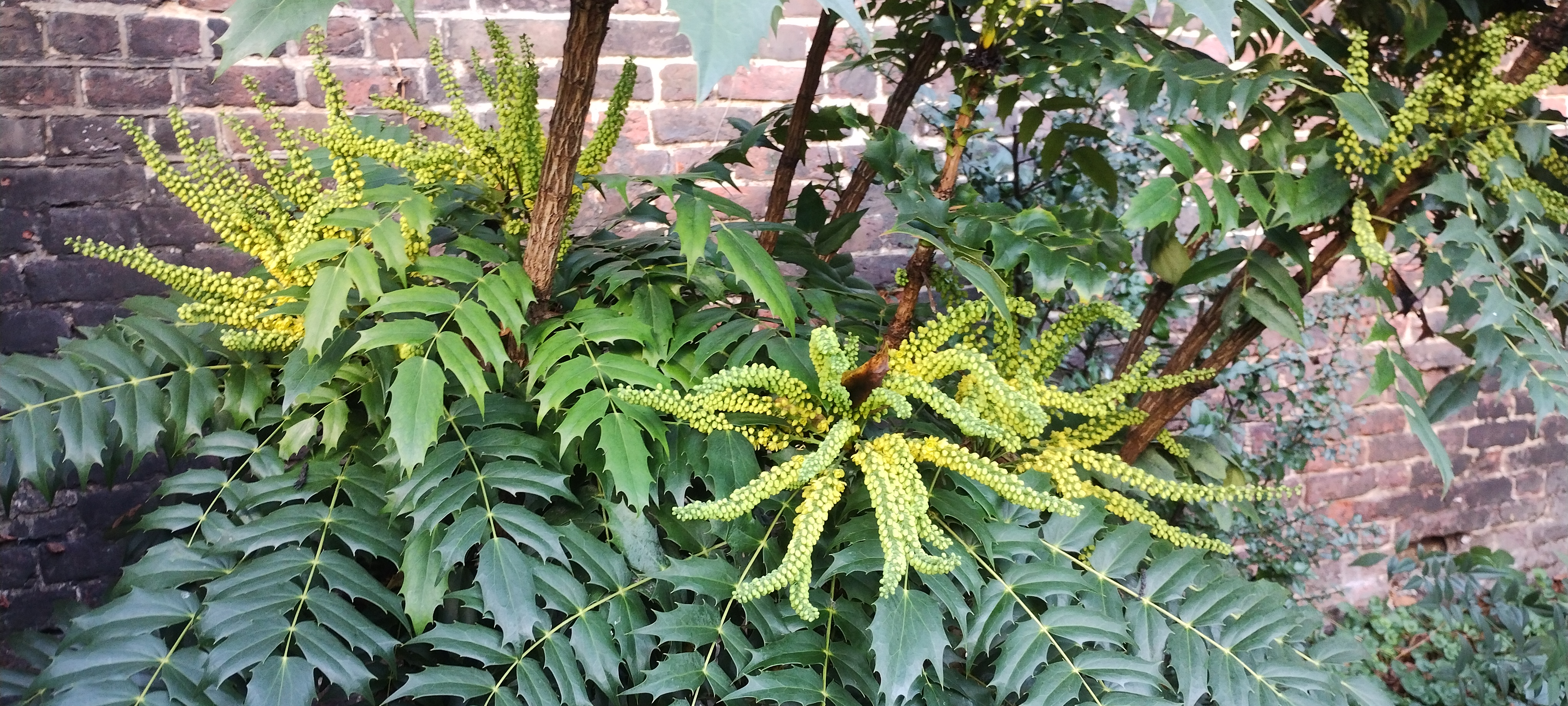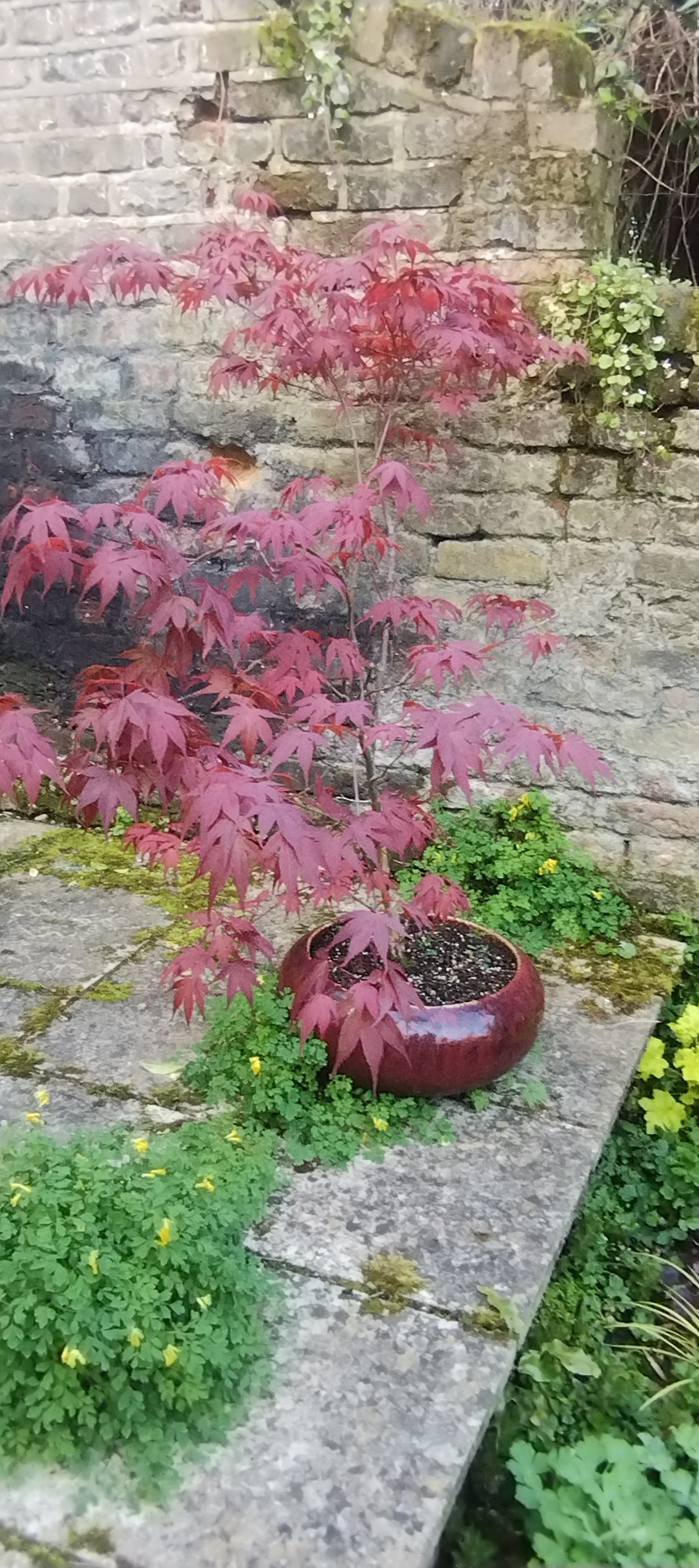 The honeysuckle is getting long but so far no flowers (although it’s miraculous that it has survived!) There was one flower on the guelder rose, so now there’s one solitary little berry. There is green growth on the honey bush but no flowers at all for the second year.