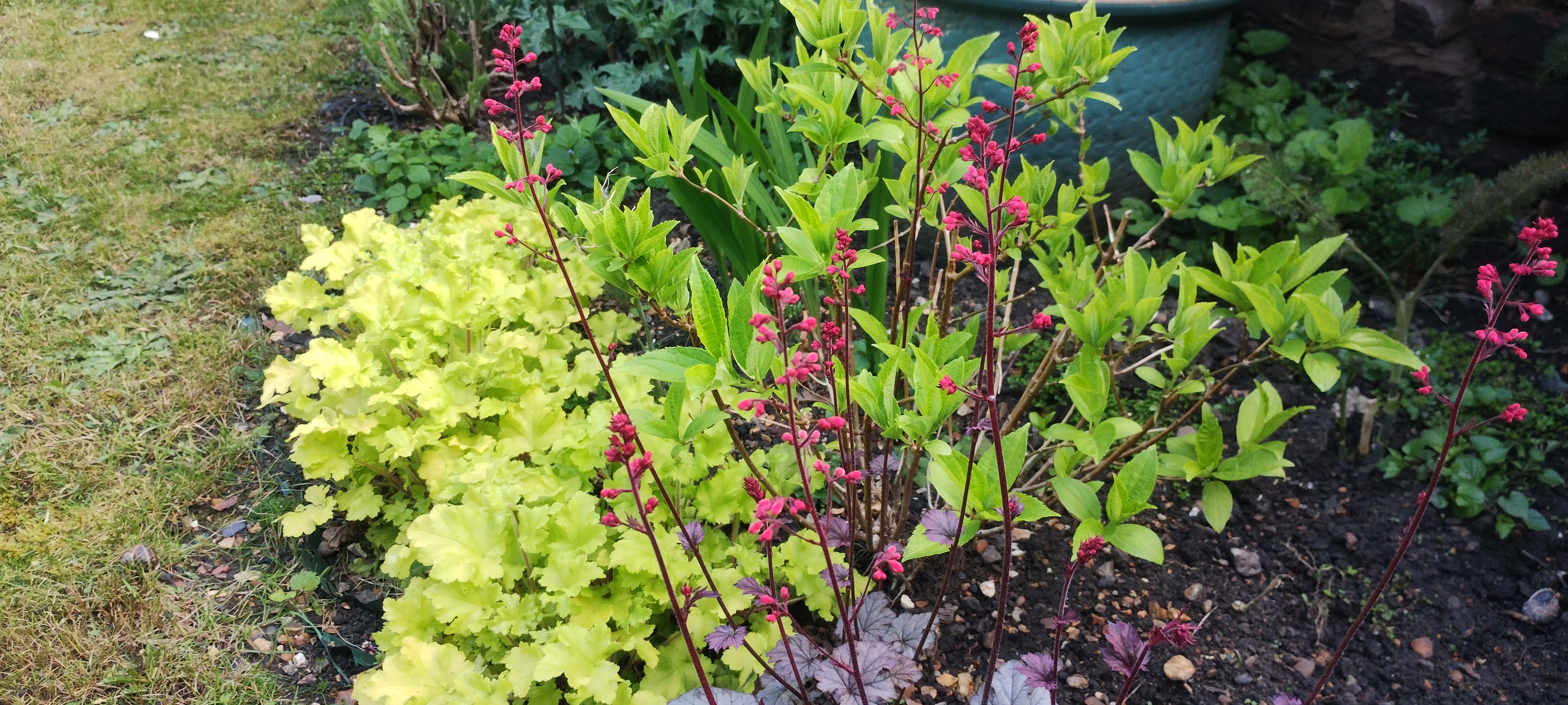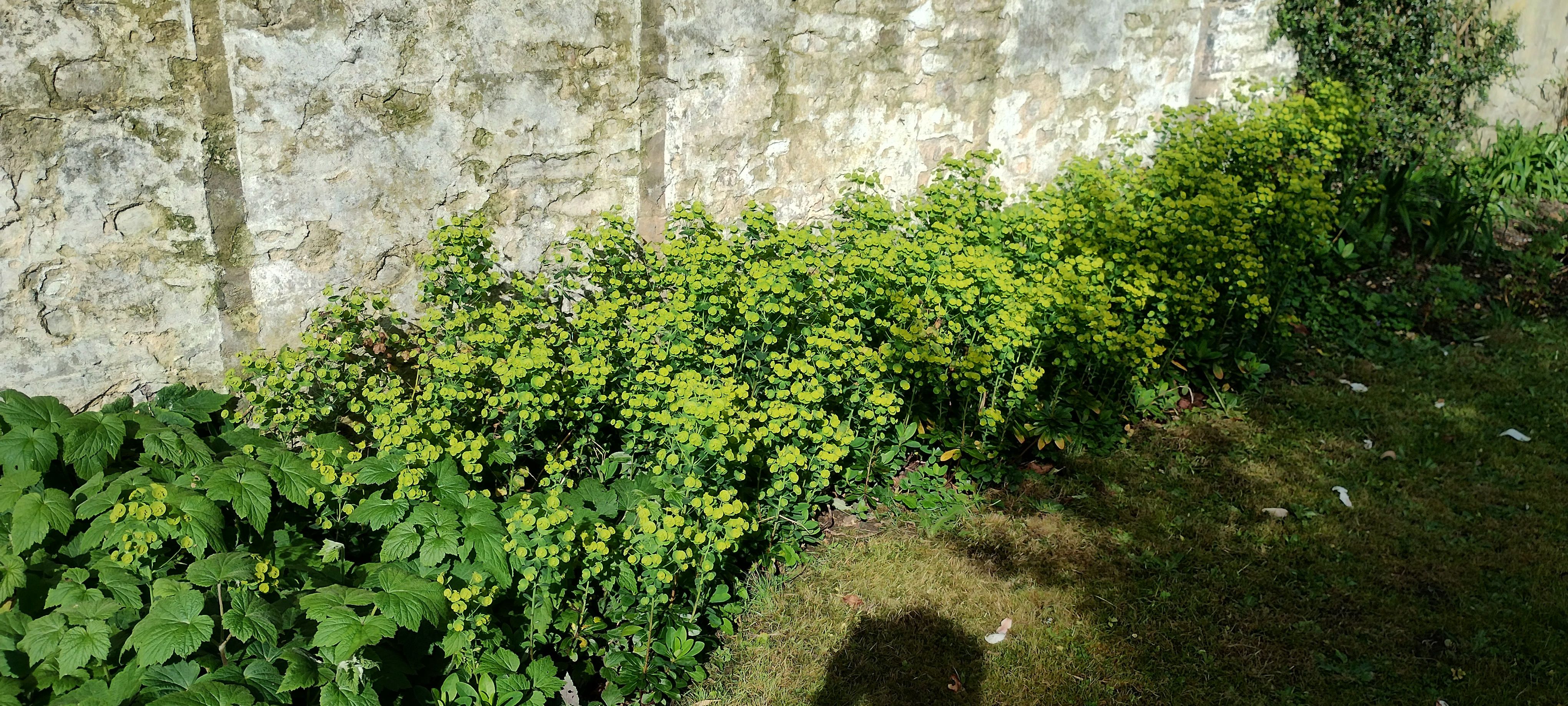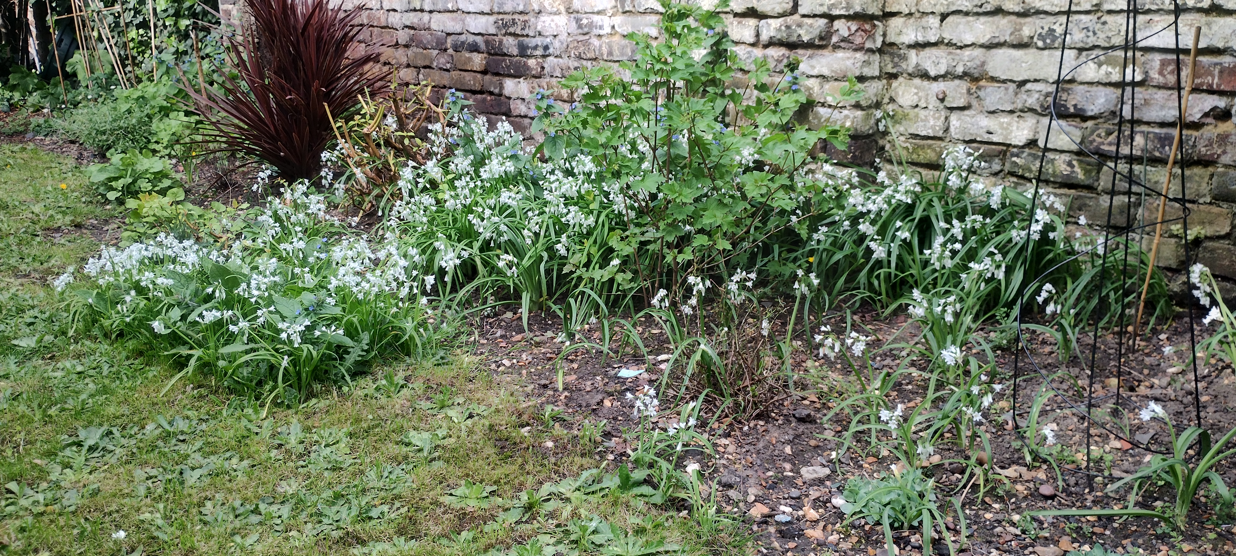 The honeysuckle is getting long but so far no flowers (although it’s miraculous that it has survived!) There was one flower on the guelder rose, so now there’s one solitary little berry. There is green growth on the honey bush but no flowers at all for the second year.
